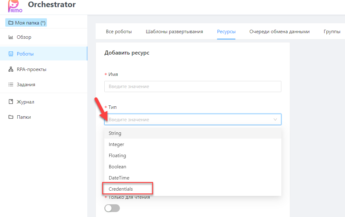 Пароль в формате SecureString можно получить из Оркестратора.Необходимо создать ресурс с типом Credentials, ввести данные.